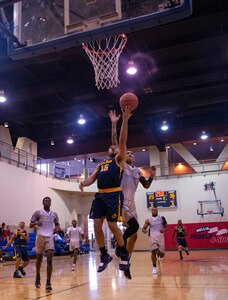 Hovering at 5,500 feet above Nellis Air Force Base, Nevada, an HC-130J Combat King II lowers its rear door and gives the final signal to the U.S. Special Operations Command Para-Commandos parachute demonstration team waiting to jump out of the aircraft. Their aerial proficiency is exhibited as they