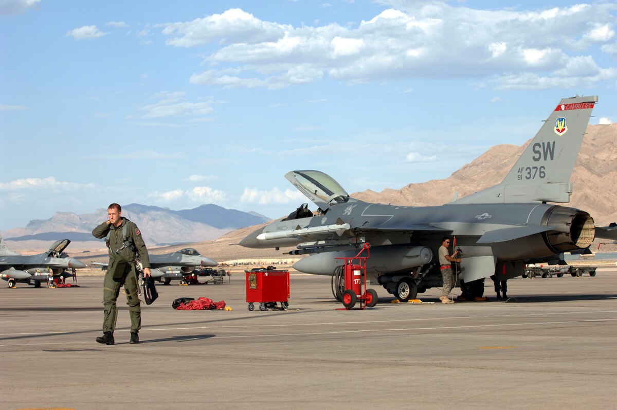 New guy at Red Flag Published July 22, 2009 By 2nd Lt. Emily Chilson Red Flag Public Affairs NELLIS AIR FORCE BASE, Nev. -- Las Vegas may have a reputation for fun and games, but when it comes to Red Flag exercises, there is no room for messing around, especially for the new guys. The very purpose of Red Flag is to train new Airmen - especially pilots - to plan and fight in large force employments, or LFEs. For Lt. Col. Ross "Rosco" Anderson, Red Flag 09-4 Air Expeditionary Wing Operations Group commander, his first Red Flag in July 1996, was a whole new ball game when it came to flying. "I was completely overwhelmed by the amount of activity going on at my first sortie," he said. "I was just trying to keep up. As the two weeks went along I know I got better, but Red Flag served its purpose very well." Captain Taylor "Nightmare" Blevins, 77th Fighter Squadron pilot and Winston-Salem, N.C., native, is currently flying the F-16CJ in his first Red Flag exercise here to prepare for combat overseas. While attending your first Red Flag exercise is a feat in itself, it took years of training for Captain Blevins to get here. After graduating from the U.S. Air Force Academy in 2005, Captain Blevins attended a year and a half of Undergraduate Pilot Training at Sheppard AFB, Texas, and then the B Course in San Antonio at Lackland AFB for one year. Now, as one of the 77th "Gamblers" stationed at Shaw Air Force Base, S.C., Captain Blevins experiences what it's like to fight a conventional war. Compared to the conditions he flies in at Shaw, the terrain, weather and training missions at Red Flag are quite different. "Shaw is lots of cities, lots of telephone poles and towers, and Shaw has no real terrain," he said. "Up in Nevada, in the range, there are few cities and lots of good terrain, mountains we can hide behind, and flat lands." The scenarios start Beyond Visual Range, or BVR, and though pilots would like to keep it that way, there are so many aggressors, or 'bad guys,' that sometimes dogfights are unavoidable. Dogfights are technically referred to as Air Combat Maneuvering, or ACM, but over the radios, pilots would say 'going to the merge.' "What makes Red Flag so valuable is you can never have this many assets or moving parts in training," Captain Blevins said. "We train daily to fight this kind of war, but until we're out here it's nearly impossible to replicate." Also difficult to replicate, is the fact that allied units fly with U.S. counterparts at Red Flag. This time around, and Captain Blevins' first time to fly alongside U.S. allies, it's the Israeli Air Force. "It's been neat to see the Israeli's different perspective," he said. "They have some different rules, and they're good at what they do, there's no question about that." From mission planning and briefings, to sorties against red air, or 'enemy' aircraft, Captain Blevins and his comrades have the opportunity to practice all the aspects of fighting in a combat environment. Shadowing him on a typical day at Red Flag, it's clear that an extensive amount of preparation and planning goes into the fight. Mission planning happens the day before the sortie, and is a large-scale effort that includes input from each unit. "At home station we mission plan usually the day prior also," Captain Blevins said. "But this is a lot more intricate and involved." With four different types of aircraft - F-15s, F-16s, E-3s and KC-135s - from about nine different units, the mission plan is definitely bound to be intricate. However, even with this many participants, Red Flag 09-4 is smaller than most Red Flags. On the days he flies Captain Blevins shows several hours prior to take-off in order to get ready. His first stop is a pre-mission mass briefing, where all units come together to run through every facet of the mission. The briefing is formally structured and covers the flight step-by-step, including the weather forecast, rules of engagement, the order of units departing and the time for each aircraft's takeoff. Pilots listen closely and take notes on any portion of the brief which may need further clarification before the flight, because missing something could be serious. "Basically just keeping your situational awareness up has been challenging with so many moving parts," Captain Blevins said. "If you're not in your altitude block, then running into someone is a very real possibility. I haven't seen any close calls this entire Red Flag but the potential is definitely there." After the mass briefing, the pilots break off into their units for smaller briefings that may be necessary pertaining to their piece of the mission. These briefings happen in each unit's respective vaults, which are classified areas within the Red Flag building. Once all the briefings are complete, and questions are answered, Captain Blevins heads out to the locker room on the flight line to suit up for the flight and then step, or walk, to his jet where he begins his pre-flight inspection of the aircraft. Captain Blevins' maintenance crew chief is waiting at the jet and helps him test the aircraft to ensure all the systems and avionics are working properly before he taxis to the runway. Although KC-135 refuelers are a part of each mission, taking off with a faulty fuel system could be a big problem. While Captain Blevins is flying, a live feed is shown in the Red Flag auditorium so the rest of the team can watch the mission play out. When he lands, about an hour and a half later depending on mission requirements, it's back to the Red Flag building for a debrief, and to hear the results of the mission - who lived and who 'died.' "Each package commander comes back and says this did or did not work after trying it," Captain Blevins said. "Each mission is a little bit different, but they're not completely different." The chance to drop live munitions in the range is something most pilots don't get to experience often. At Red Flag, live munitions are used in many of the training